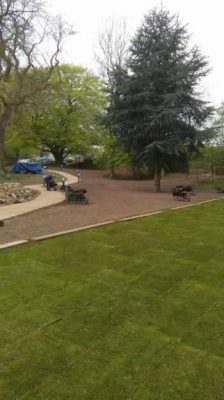 The Lawn Turf Centre was chosen to supply and lay the lawn turf for a large landscaping project at Dronfield Hall Barn which is situated between Sheffield and Chesterfield. In all the project required 2’500 square metres of turf and was laid in 3 stages amounting to about 2 weeks in total.